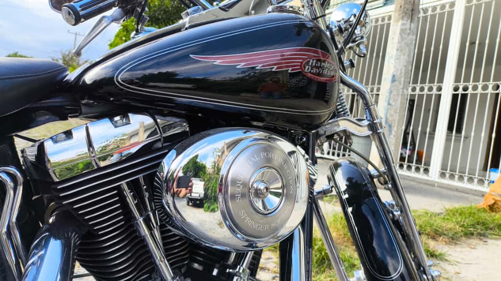 Moto en estado impecable, cuidada al detalle, con numerosos accesorios originales Harley y piezas cromadas.